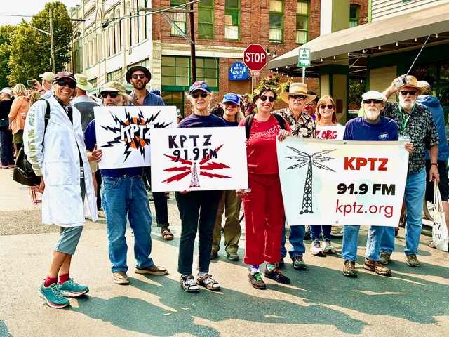 KPTZ volunteers showed up with signs at the short but enthusiastic Uptown Parade on Saturday, August 19.