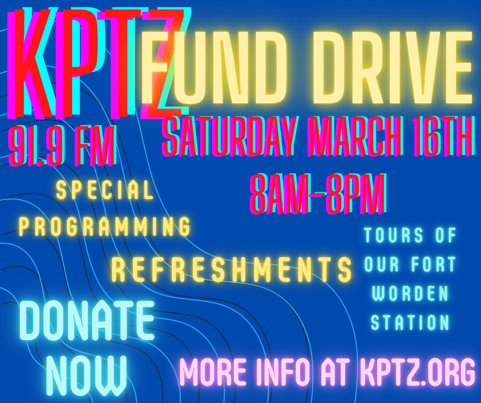 KPTZ will be offering tours of our Fort Worden Station from 8 am to 6 pm on Saturday. March 16. We will have light refreshments available and are happy to take your donation in person by cash, check or card. We are eager to show off our space, answer questions and listen to some exceptional programming from some of KPTZ’s best DJs. Our station is in building 305 on the Fort Worden Campus. Directions can be found here. Parking is available at the front of the building and by the Madrona Mind Body Institute. If you can’t join us in person this Saturday, you can donate by clicking the Donate now button at the top of this page, where you will be taken to a secure donation portal. All Donations received will go to our general operating fund.