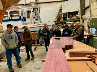 In this month’s edition of Our Working Waterfront, KPTZ’s Chris Bricker joins co-hosts Port Director Eron Berg and Port Commissioner Pam Petranek for an update on happenings around the Port. Then Pam gives a special guided tour of the Boat Yard for high school student guests from the Port Townsend Maritime Academy, along with their instructor Karl Jorden. We’ll visit with Shipwrights Pat Mahon, Cory Armstrong (owner of Goldstar Marine), Pete Stein, Melanya Nordstrom, and Dave Thompson. Working in the Boat Yard means building friendships and experiences along the way. Opportunities abound to learn about design, building, maintenance and repair. Businesses in the Yard are independent yet interconnected, because they complement one another in so many ways. You can start out with a box of tools, work with others or on your own, be employed by businesses, rent shop space. A good work ethic and the willingness to learn are the main ingredients that can lead to a fine career as a shipwright.