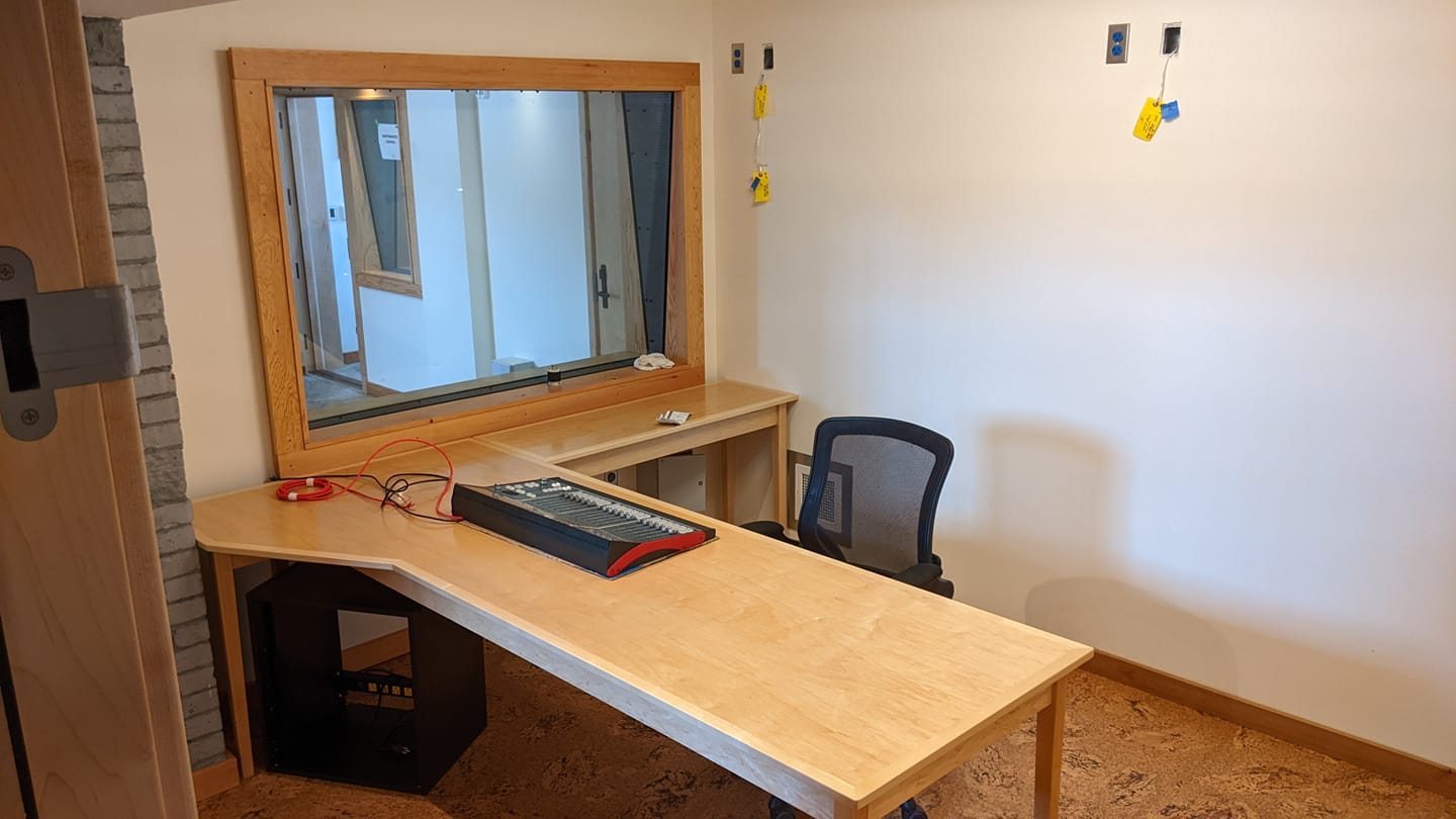One of KPTZ’s new broadcast studios, with custom furniture by Port Townsend woodworker Gary Jonland.