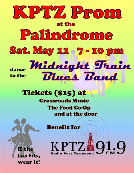Join us for an evening of dancing to the tunes of the Midnight Train Blues Band, sponsored by KPTZ friend and supporter, Chicago Bob Longmire. Bring your date – or just yourself – and enjoy dancing on Saturday evening, May 11 from 7 to 10pm for the KPTZ Prom at the Palindrome (located off Jacob Miller Road). Tickets are $15, with all proceeds going to KPTZ.
