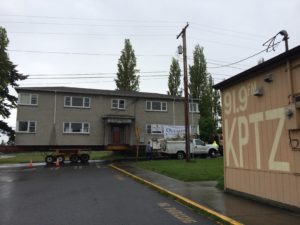 KPTZ was off-the-air Thursday afternoon for over three hours, as crews disconnected power and telecommunication lines to allow passage of this multiple family housing unit up Blaine Street. The four-unit house will be situated at the corner of Van Ness and Cherry Street.